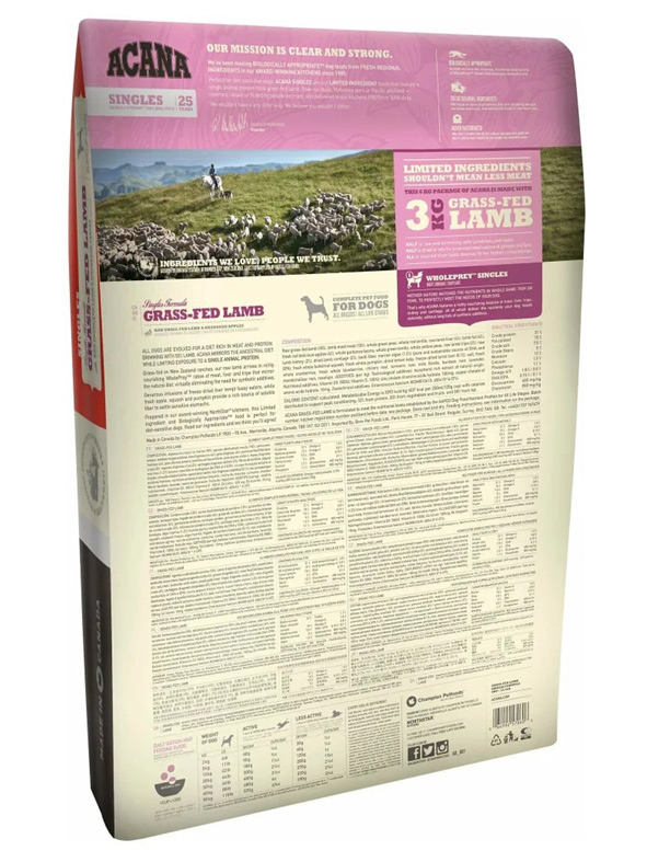 ACANA Singles Dog Grass-Fed Lamb — корм для собак всех пород и возрастов с ягненком.