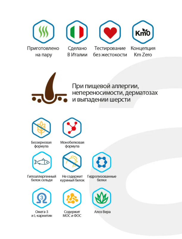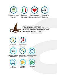 Рекомендуется также в качестве поддержки функции кожи и ее производных в случае дерматоза и чрезмерного выпадения шерсти.