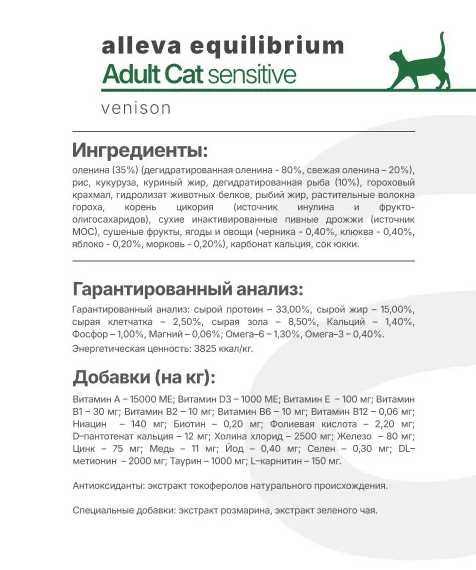 Полнорационный сухой корм для взрослых кошек с чувствительным пищеварением с олениной.