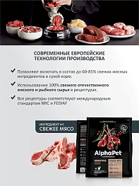 AlphaРet®Superpremium — выбор владельцев, которые хотят быть уверены в том, что дают своему питомцу лучшее из возможного: натуральные отборные ингредиенты, высокое содержание животного белка и свежее мясо в основе состава. AlphaPet®Superpremium ставит точку в споре о том, чем кормить питомца.
