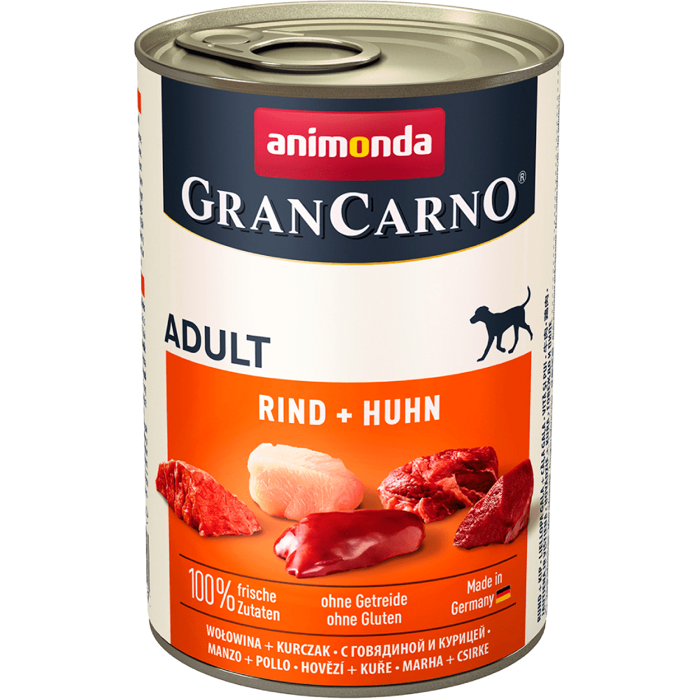 Консервы с говядиной и курицей для взрослых собак (Animonda Gran Сarno Original Adult Dog - Beef Chicken) − полнорационное, сбалансированное влажное питание супер-премиум класса для взрослых собак.