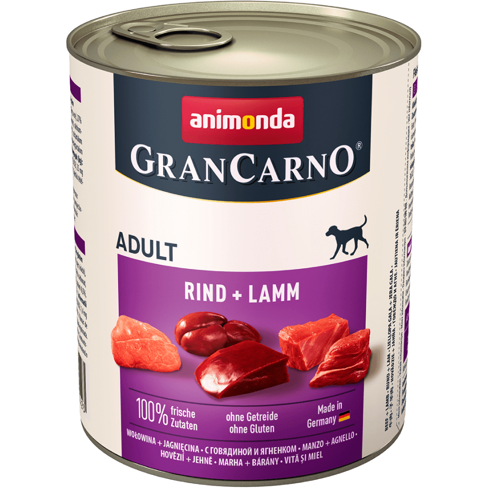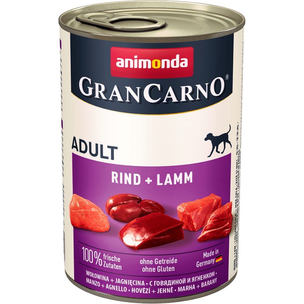 Консервы с говядиной и ягненком для взрослых собак (Animonda Gran Сarno Original Adult Dog - Beef Lamb) − полнорационное, сбалансированное влажное питание супер-премиум класса для взрослых собак.
