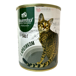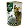мясо кролика - 15%, мясо курицы - 15%, рубец - 15%, печень - 15%, сердце - 10%, желирующая добавка, растительное масло, таурин, соль, вода.