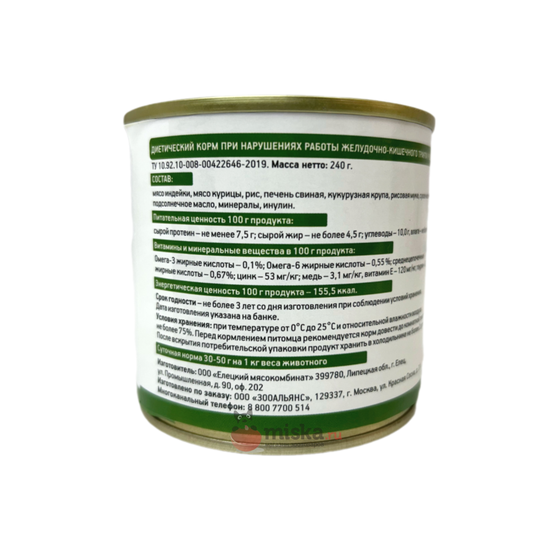 Состав: мясо индейки, мясо курицы, рис, печень свиная, кукурузная крупа, рисовая мука, сухое молоко цельное, яйцо, рыбий жир, подсолнечное масло, минералы, инулин.