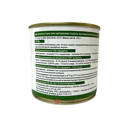 Питательная ценность 100г продукта: сырой протеин - не менее 7,5г; сырой жир - не более 4,5г; углеводы - 10,0г; влага - не более 80,0%.
