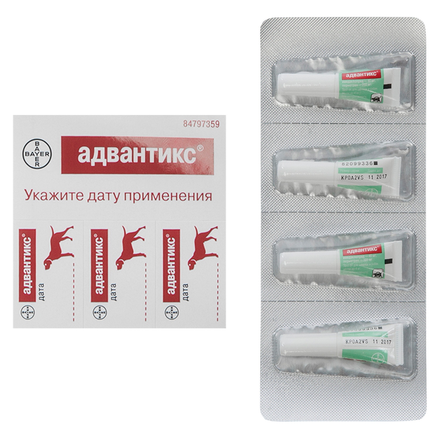 Выпускают Адвантикс в форме раствора (spot-on) по 0,4; 1,0; 2,5; 4,0 и 6,0 мл в полимерных пипетках, расфасованных по 1 или 4 штуки в блистеры из алюминиевой фольги, помещённые в картонные коробки вместе с инструкцией по применению.