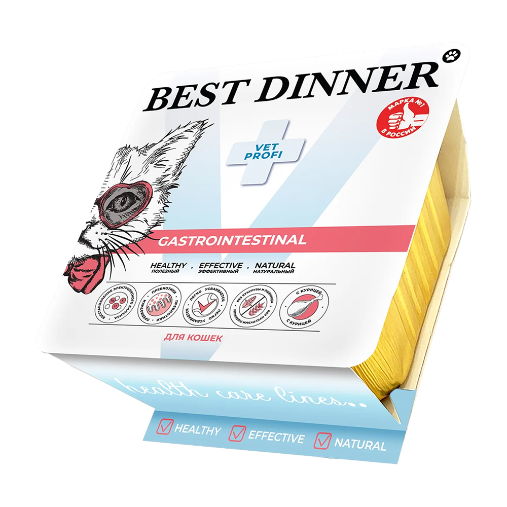 Влажный диетический полнорационный консервированный корм для кошек при нарушениях пищеварения и всасывания в кишечнике.