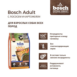 Рацион, разработанный специально для домашних собак со средним уровнем активности. Свежее мясо лосося и особая комбинация пищевых волокон делают этот рацион отличным выбором для собак с чувствительным пищеварением.Оптимальное соотношение белка и жира помогает поддерживать собаке правильную кондицию, а разнообразие вкусов серии ADULT позволяет избежать приедаемости корма и удовлетворить предпочтения разборчивых в еде собак.