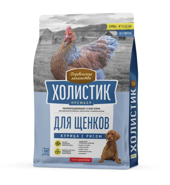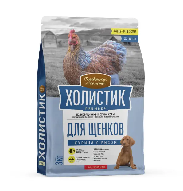 Сухой корм «Деревенские лакомства - Холистик Премьер» для щенков "Курица с рисом" - рецепт здорового роста и развития!