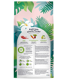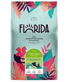 Сбалансированное полнорационное питание заботится о коже и шерсти и способствует здоровому пищеварению. В рационе кормов Florida используется только белок животного происхождения.