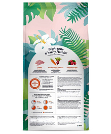 Сбалансированное полнорационное питание заботится о коже и шерсти и способствует здоровому пищеварению. В рационе кормов Florida используется только белок животного происхождения.