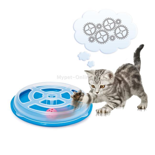 Стационарная игрушка с шариком, произвольно катающимся внутри круглого корпуса. Верхняя панель с отверстиями для лап. Диаметр игрушки 29 см. Georplast, Италия.