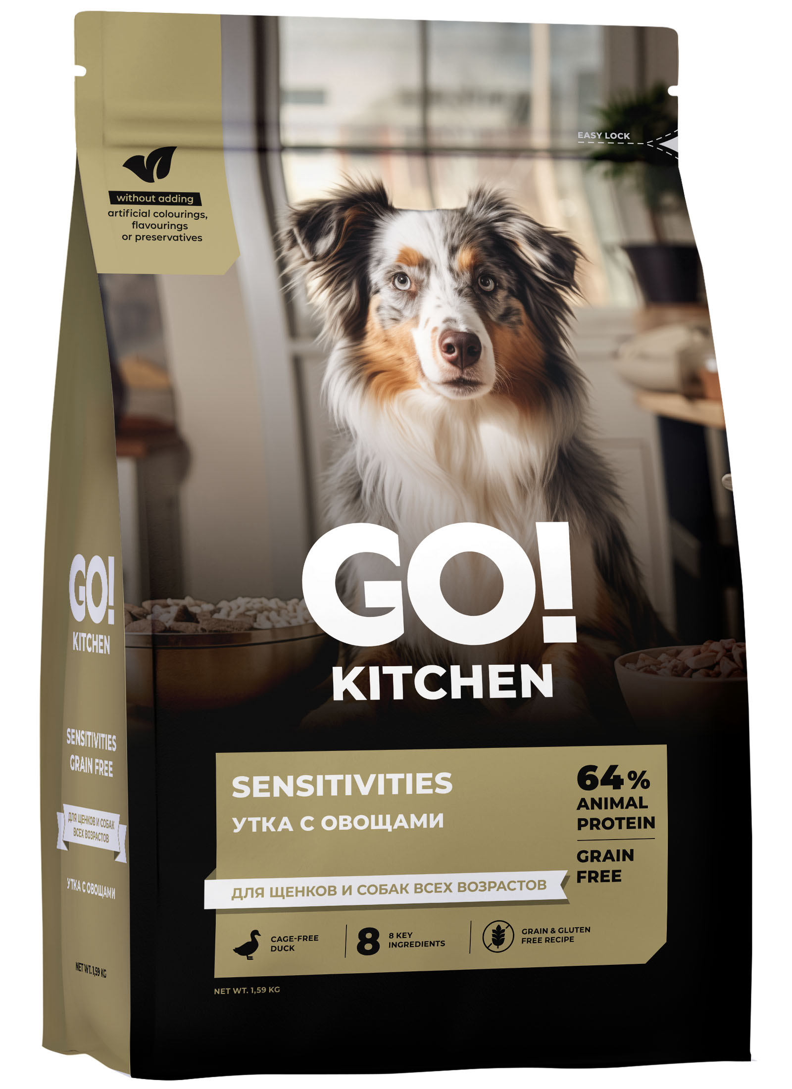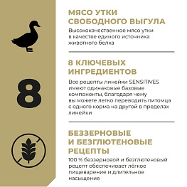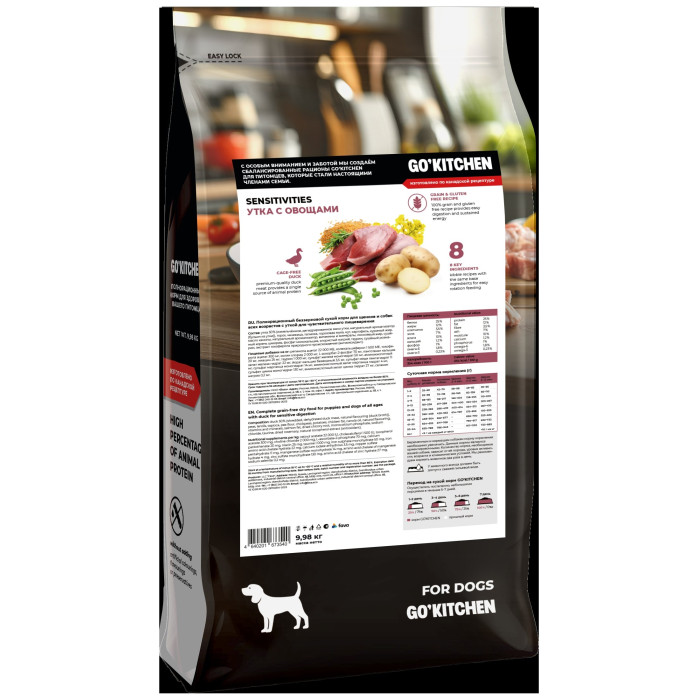Полнорационный беззерновой сухой корм для щенков и собак всех возрастов с уткой и овощами для чувствительного пищеварения.