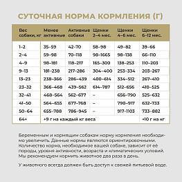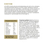 Гарантированный анализ: Белки – 25 %, Жиры – 12 %, Клетчатка – 3,5 %, Влага – 10 %, Зола – 7 %, Кальций – 1,2 %, Фосфор – 1 %, Омега-6 – 1,8 %, Омега-3 - 0,23 %.