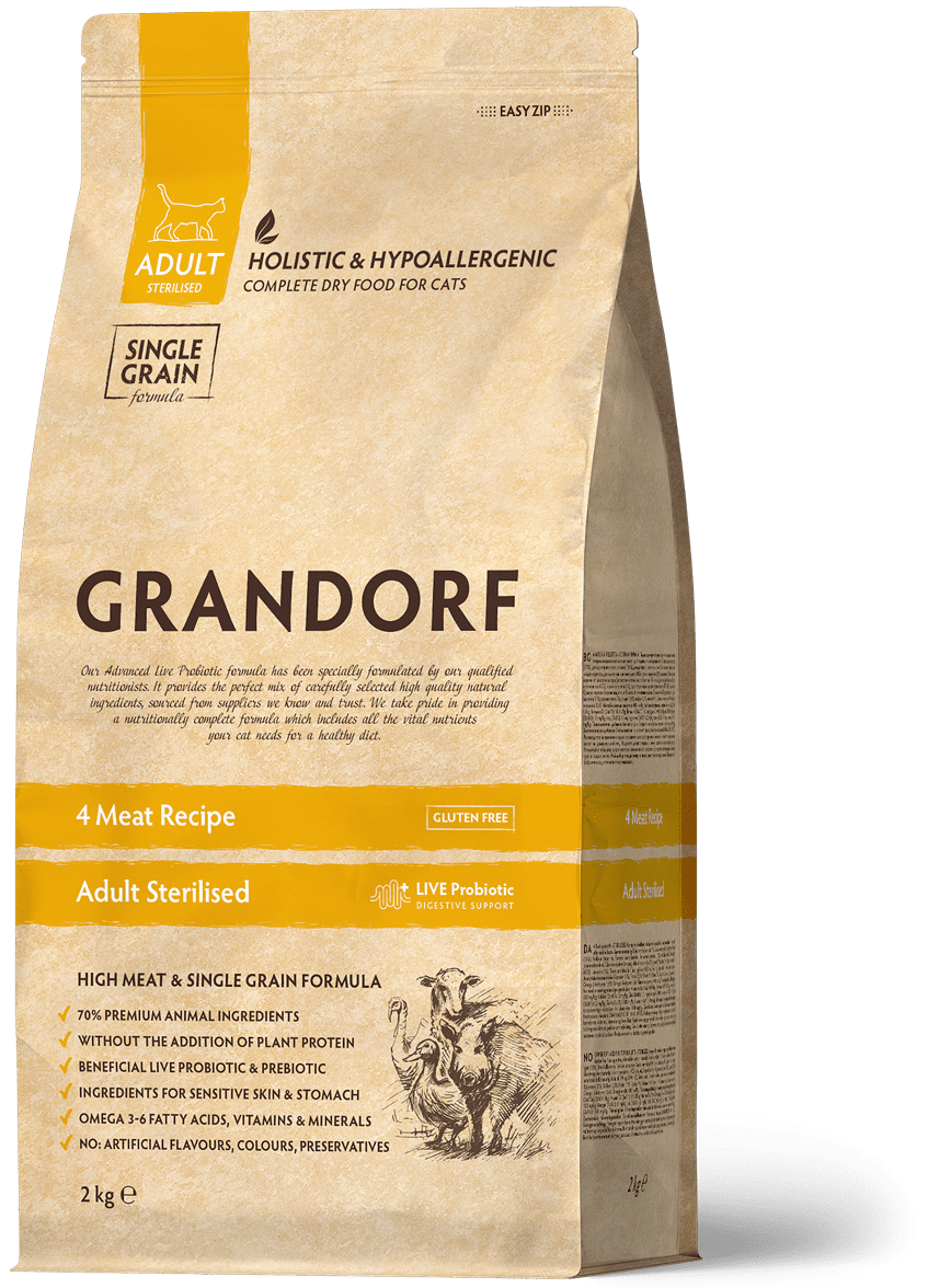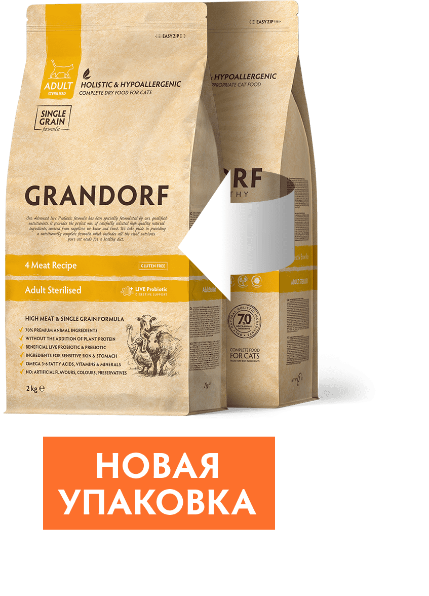 Низкое содержание жиров и повышенное содержание белков, а также L-Карнитин, способствует поддержанию веса и мышечной массы у стерилизованных и пожилых питомцев в оптимальной форме.