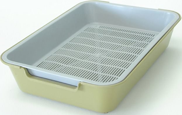 Туалет для кошек имеет низкие бортики и специальную сетку, благодаря чему возможно использование лотка без применения наполнителя для туалетов. Изготовлен из нетоксичной и безопасной для здоровья животного пластмассы. Туалет легко чистить и мыть.