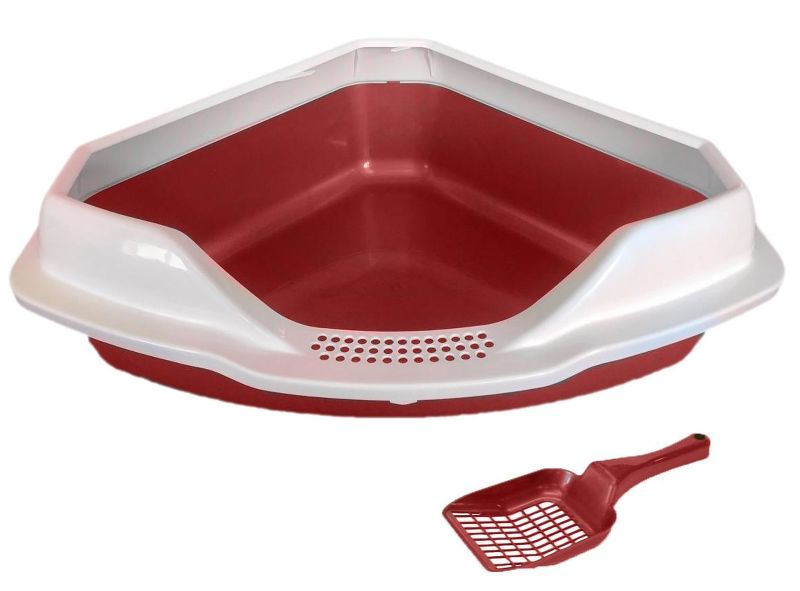 Изготовлен из прочного нетоксичного пластика. Туалет открытый, оснащен бортиком, что предотвращает разбрасывание наполнителя вокруг лотка. В комплект входит совок для уборки туалета.