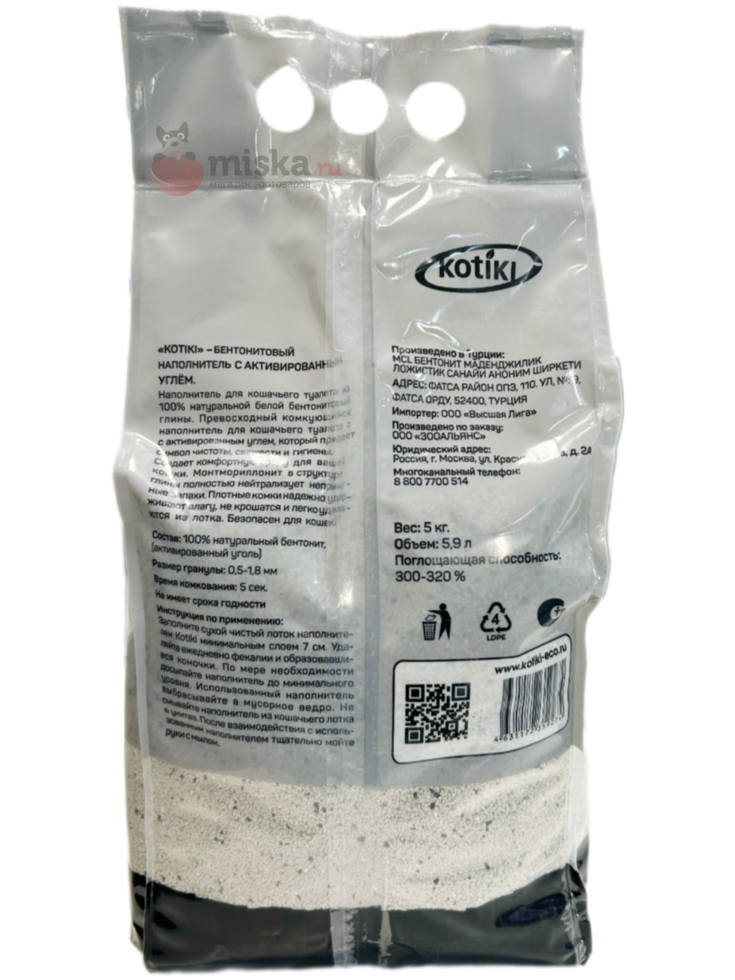 Наполнитель для кошачьего туалета из 100% натуральной белой бентонитовой глины. Превосходный комкующийся наполнитель для кошачьего туалета с активированным углём, который придает символ чистоты, свежести и гигиены. Создает комфортную среду для вашей кошки. Монтмориллонит в структуре глины полностью нейтрализует неприятные запахи. Плотные комки надежно удерживают влагу, не крошатся и легко удаляются из лотка. Безопасен для кошек.