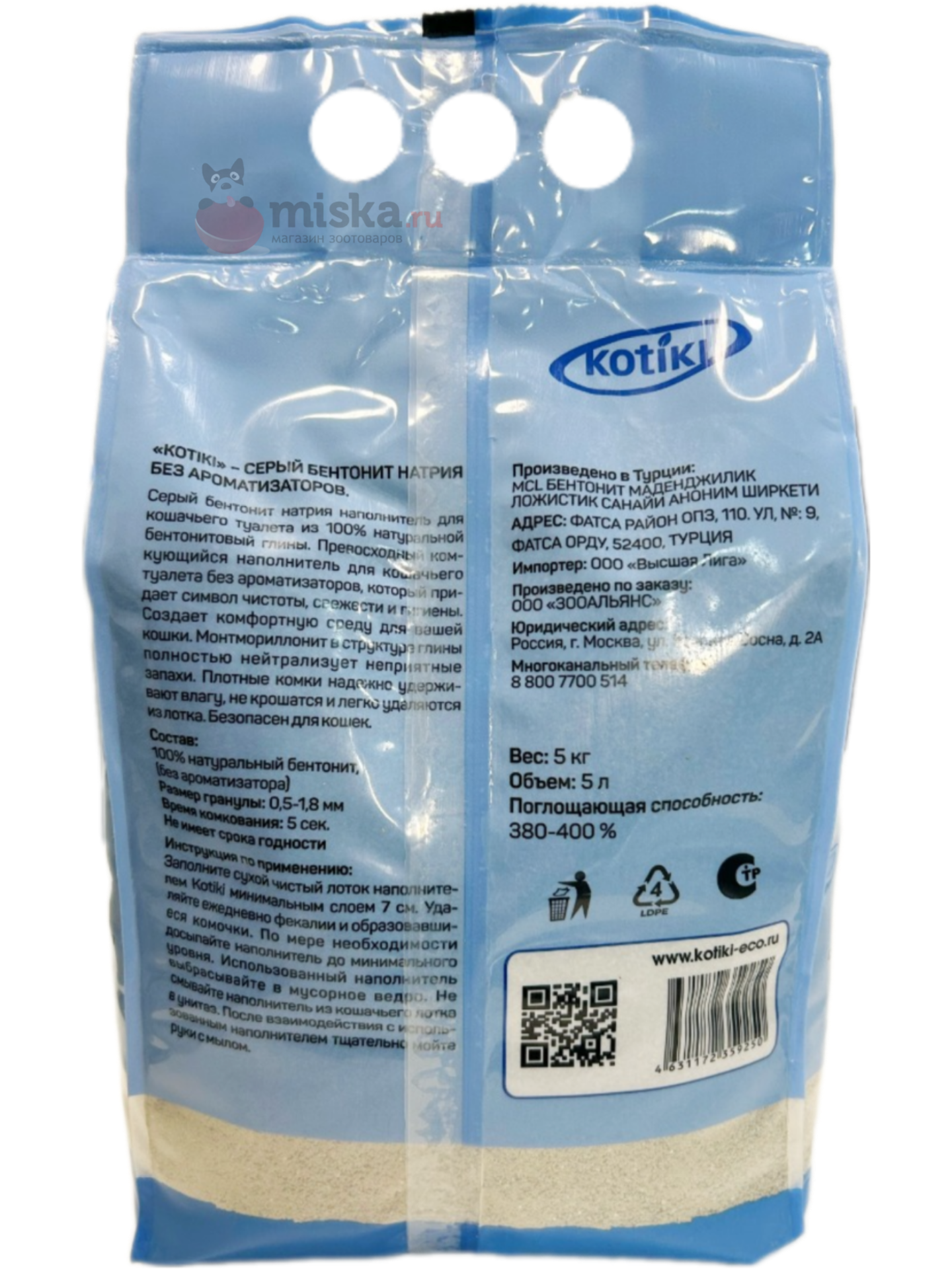 Серый бентонит натрия наполнитель для кошачьего туалета из 100% натуральной бентонитовой глины. Превосходный комкующийся наполнитель для кошачьего туалета без ароматизыторов, который придает символ чистоты, свежести и гигиены. Создает комфортную среду для вашей кошли. Монтмориллонит в структуре глины полностью нейтрализует неприятные запахи. Плотные комки надежно удерживают влагу, не крошатся и легко удаляются из лотка. Безопасен для кошек.