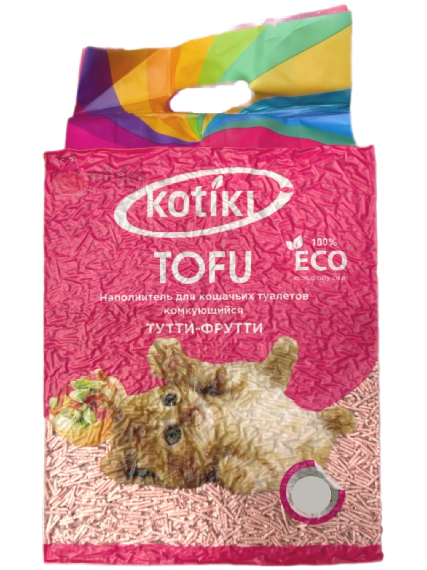 Особенности комкующегося наполнителя ToFu "Kotiki" в его удобстве применения утилизации в унитаз, не засоряя при этом канализацию. Количество, смываемое в унитаз, не должно быть более одного комочка. Наполнитель ToFu нейтрализует неприятный запах, удерживает влагу и защищает вашего питомца и дом от бактерий.