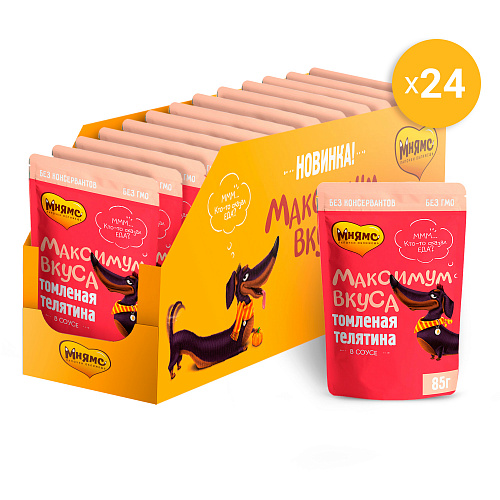 Знакомьтесь! Такса Макс – наш инспектор вкуса! Он выбирает 100% натуральный, полезный, а, главное, такооооой вкусный корм с томленой телятиной в соусе не просто так!