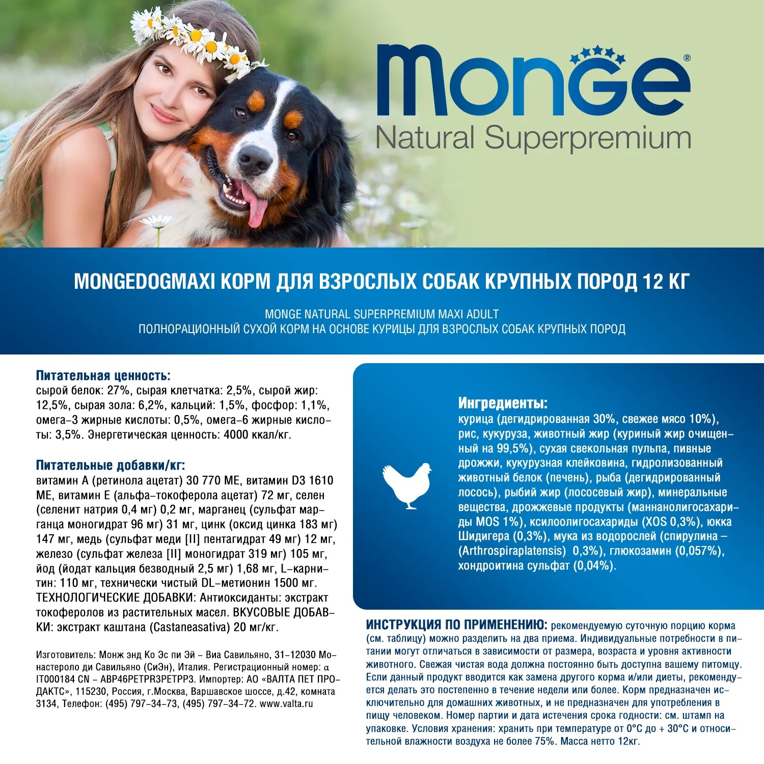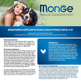 Корм MONGE DOG Maxi Adult содержит оптимальное сочетание компонентов,