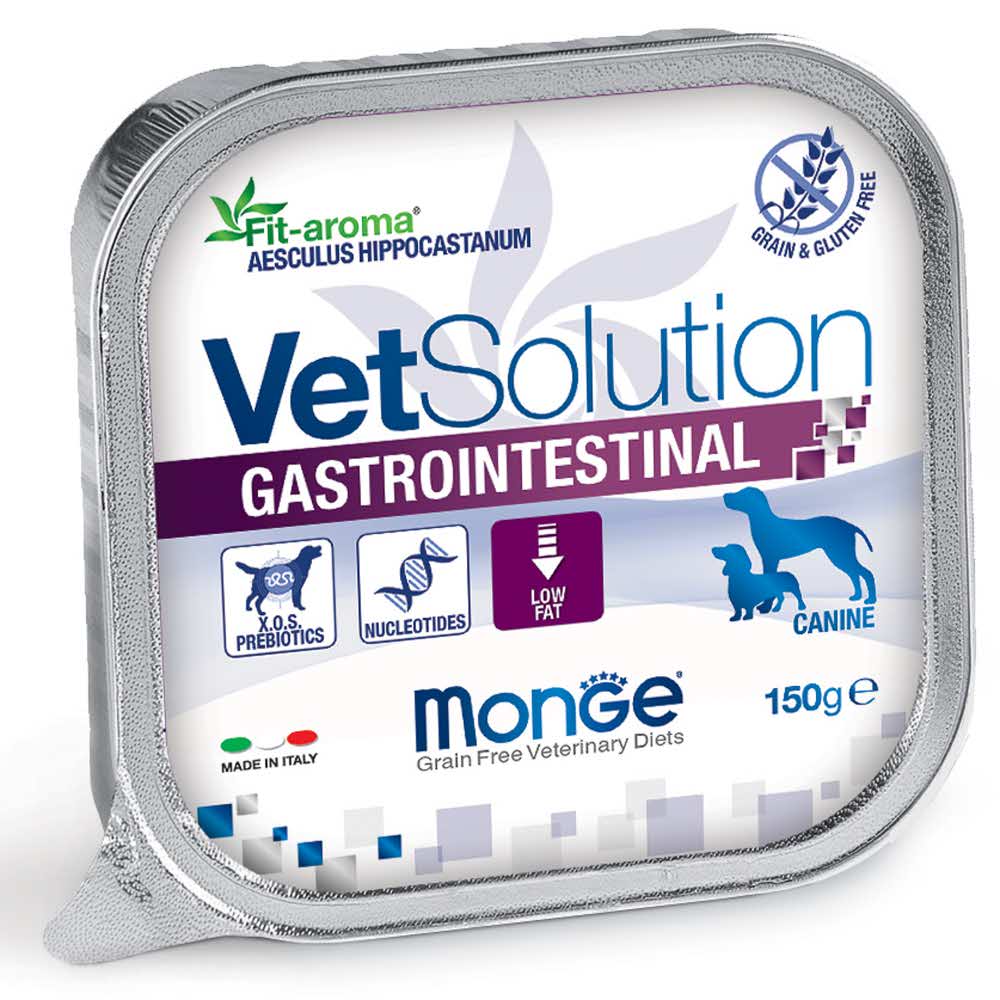 Формула Fit-aroma в корме для собак Monge VetSolution Gastrointestinal содержит натуральный экстракт конского каштана обыкновенного, оказывающего антиспазматическое действие, вызывая модуляцию холинорецепторов и кальциевых каналов на уровне кишечника.