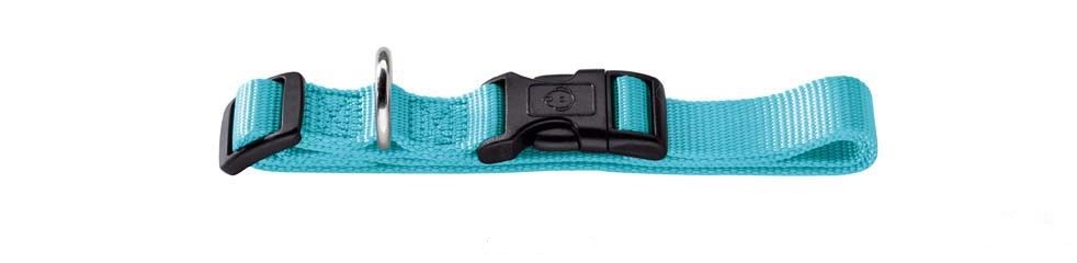 Изделие очень стильное и по-настоящему притягивающее взгляд: ошейник сделан из качественного нейлона бирюзового цвета. Оснащен хромированной фурнитурой. На ошейнике предусмотрена удобная пластиковая застежка и пластиковый бегунок, с помощью которого легко отрегулировать изделие по размеру и зафиксировать его на шее питомца.