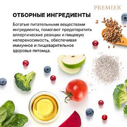 Свежее бескостное мясо ягненка (20%), дегидрированное мясо индейки (18%), рис, горох, жир индейки (7%), картофель, свекла, порошок корней цикория (натуральный источник пребиотиков: FOS и инулин), минералы, пивные дрожжи (природный источник MOS и бета-глюканов), льняное семя, лососевое масло (0,5%), яблоки, клюква, черника, брокколи, шпинат, томаты, глюкозамина гидрохлорид (100 мг/кг), хондроитин сульфат (100 мг/кг), Юкка Шидигера, грейпфрут, розмарин, куркума.