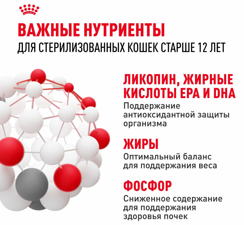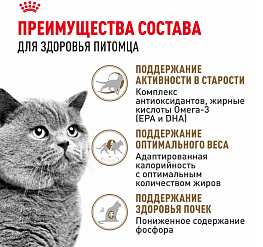 Благодаря умеренному содержанию фосфора ROYAL CANIN® Ageing Sterilised 12+ поддерживает функцию почек и здоровье мочевыделительной системы пожилых кошек.