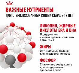 Рацион ROYAL CANIN® Ageing Sterilised 12+ предназначен для стерилизованных пожилых кошек и разработан с учетом их особых потребностей в питательных веществах.