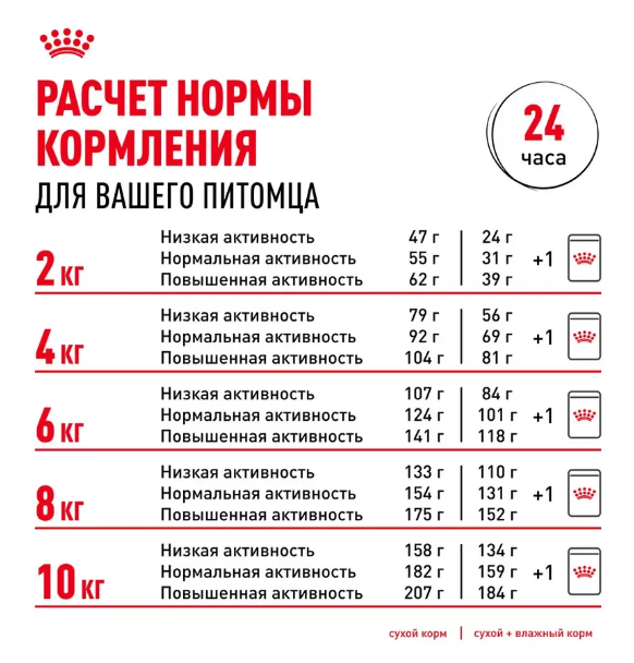 Если вы выбрали для своей собаки смешанное питание, следуйте рекомендованным нормам кормления, чтобы сочетать сухой и влажный продукт в пропорциях, оптимальных для здоровья животного.