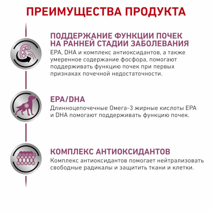Омега-3 жирные кислоты EPA, DHA и комплекс антиоксидантов, а такжеумеренное содержание фосфора помогают поддерживать функцию почек при первых признаках недостаточности.
