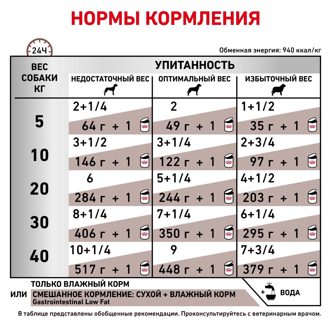 | Вес собаки (кг) | Ниже нормы | - | Ниже нормы | - | Нормальный | - | Нормальный | - | Выше нормы | - | Выше нормы | - |