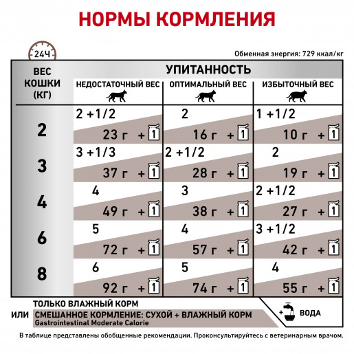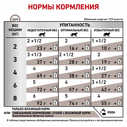 Рекомендации: Применяйте корм GASTROINTESTINAL в течение не менее 1-2х недель при острой диарее и в период восстановления, до полного выздоровления.