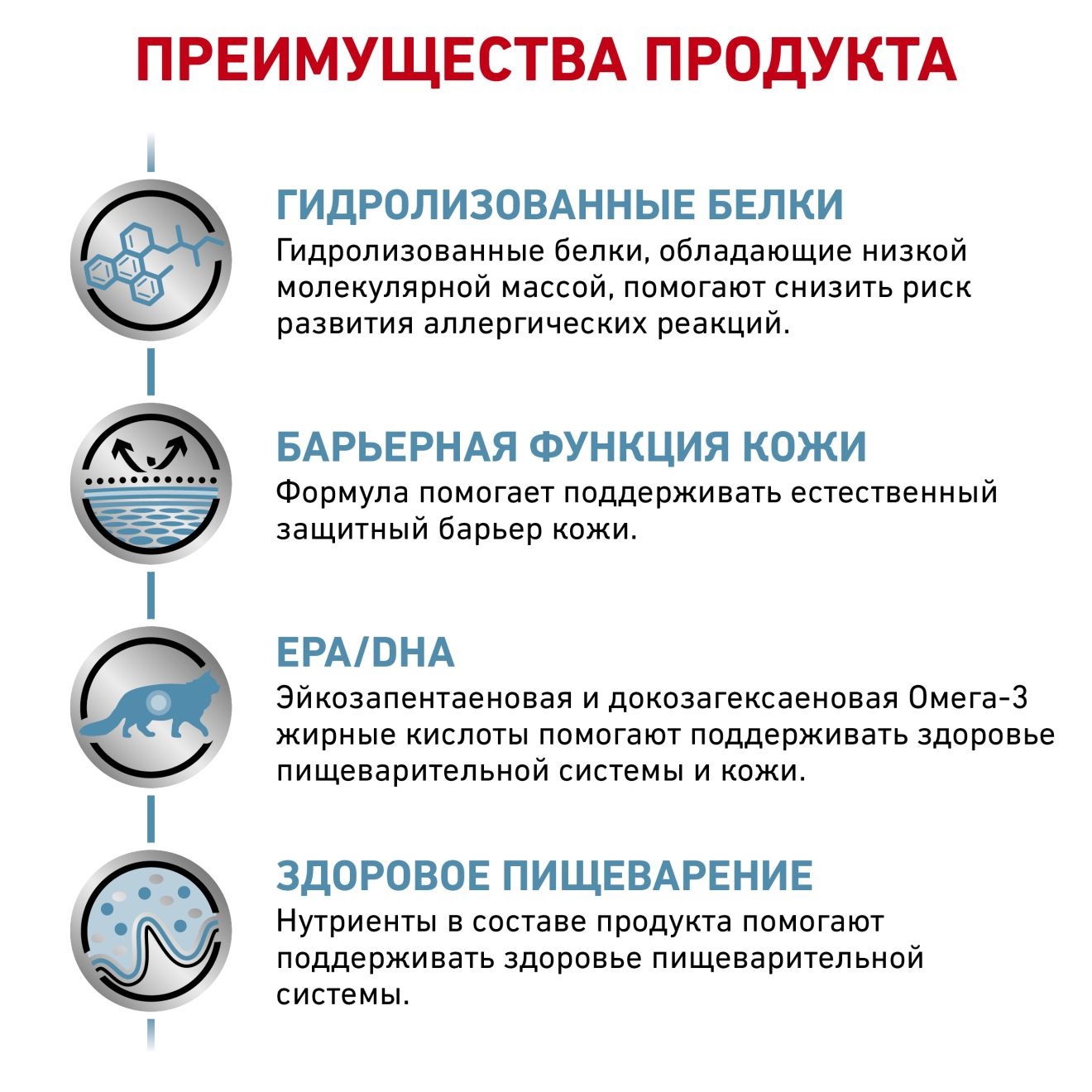 Корм сухой полнорационный диетический для взрослых кошек, применяемый при пищевой аллергии или пищевой непереносимости. Ветеринарная диета