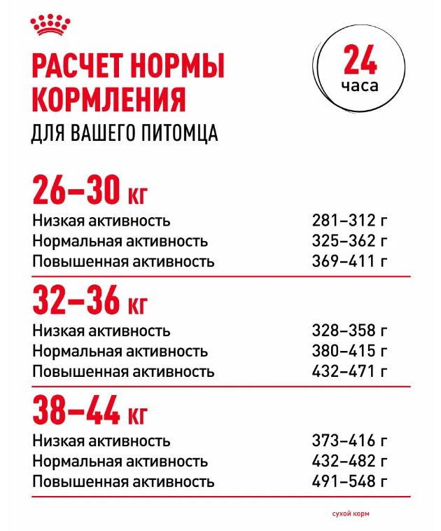 | Вес взрослой собаки | Низкая активность | Нормальная активность | Повышенная активность |