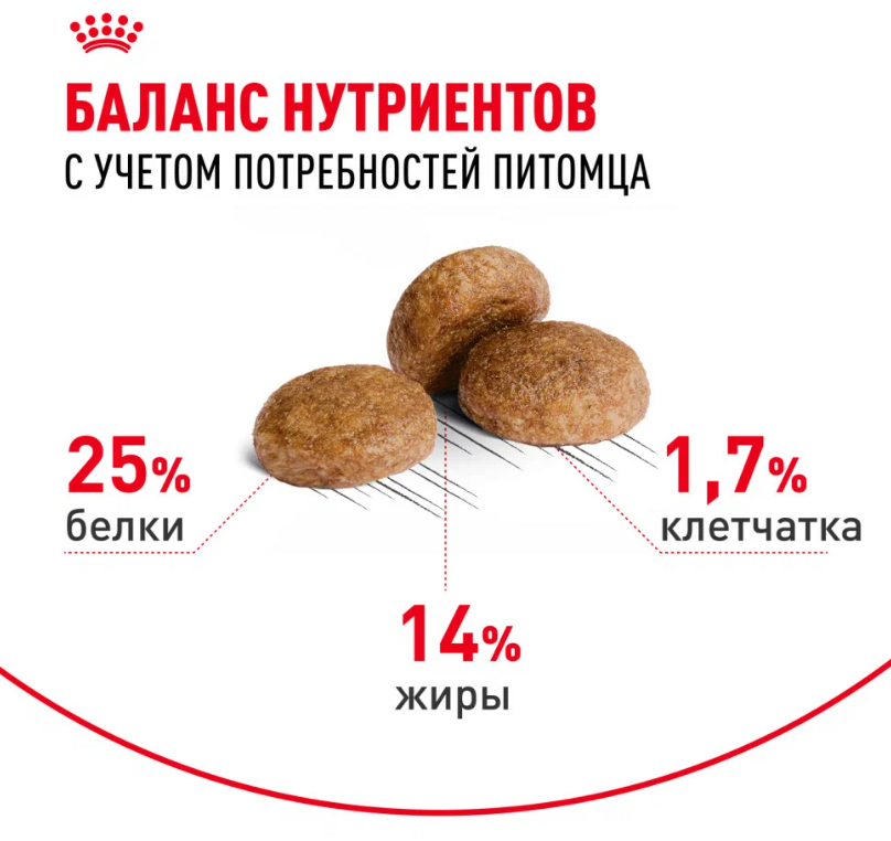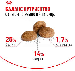 Благодаря эксклюзивному комплексу нутриентов ROYAL CANIN® Medium Adult 7+ хорошо усваивается. В составе корма сбалансированно соотношение различных типов клетчатки и оптимальное количество высококачественного белка.