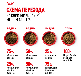 ROYAL CANIN® Medium Adult 7+ содержит все необходимые питательные вещества для поддержания здоровья собак пород среднего размера в зрелые годы, в период проявления первых признаков старения.