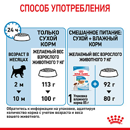100% полнорационное и сбалансированное питание. Подходит щенкам мелких размеров (вес взрослой собаки до 10 кг).