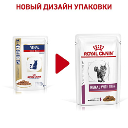Корм консервированный полнорационный диетический для взрослых кошек с говядиной для поддержания функции почек при острой или хронической почечной недостаточности. Ветеринарная диета