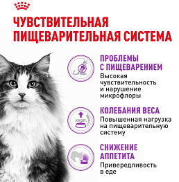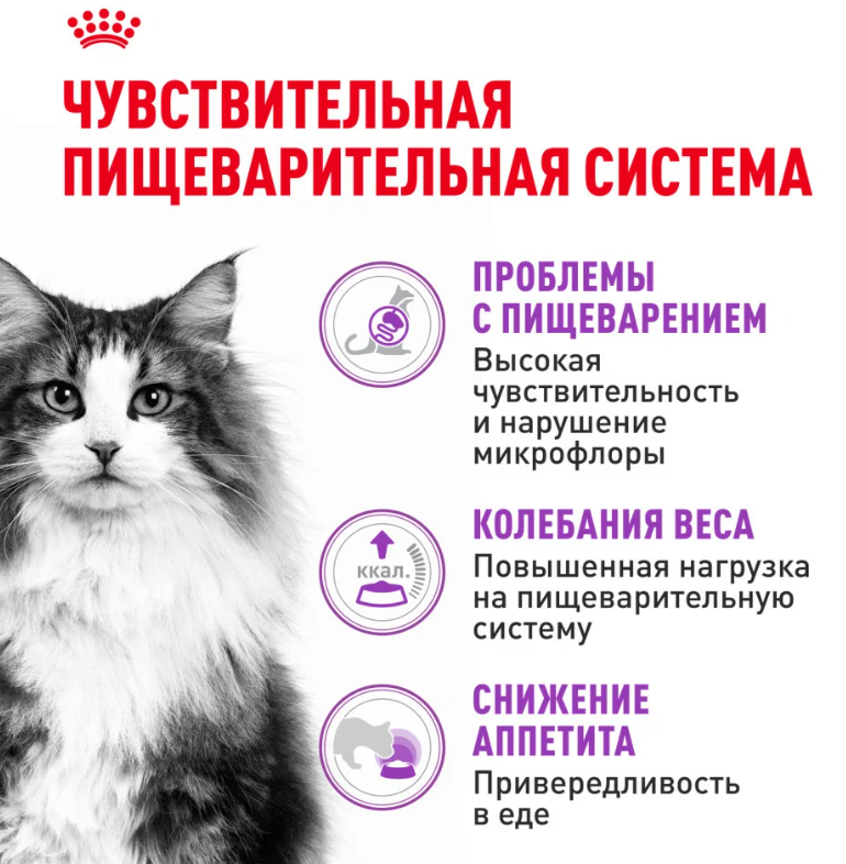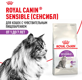 Если у вашей кошки отмечаются проблемы с пищеварением, то, возможно, потребуется пересмотреть ее рацион. ROYAL CANIN® Sensible 33 разработан для взрослых кошек в возрасте 1–7 лет с чувствительной пищеварительной системой и содержит уникальную комбинацию питательных веществ для обеспечения оптимальной работы пищеварения и пребиотики для поддержания баланса кишечной микрофлоры.