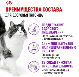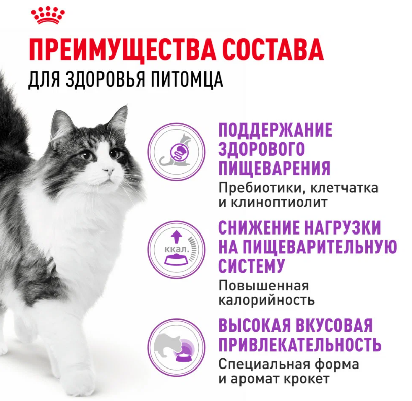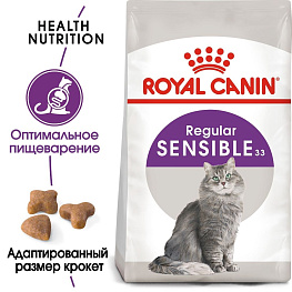 ROYAL CANIN® Sensible 33 обладает высокой вкусовой привлекательностью и состоит из крокет трех различных форм. Тщательно отобранные ароматические компоненты стимулируют аппетит кошек и облегчают пищеварение. Кроме того, ROYAL CANIN® Sensible 33 поддерживает здоровье мочевыделительной системы взрослой кошки.
