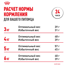 Смешанное кормление | 23 г + 1 пауч “Royal Canin Instinctive” | 32 г + 1 пауч “Royal Canin Instinctive” | 40 г + 1 пауч “Royal Canin Instinctive” | 48 г + 1 пауч “Royal Canin Instinctive” |