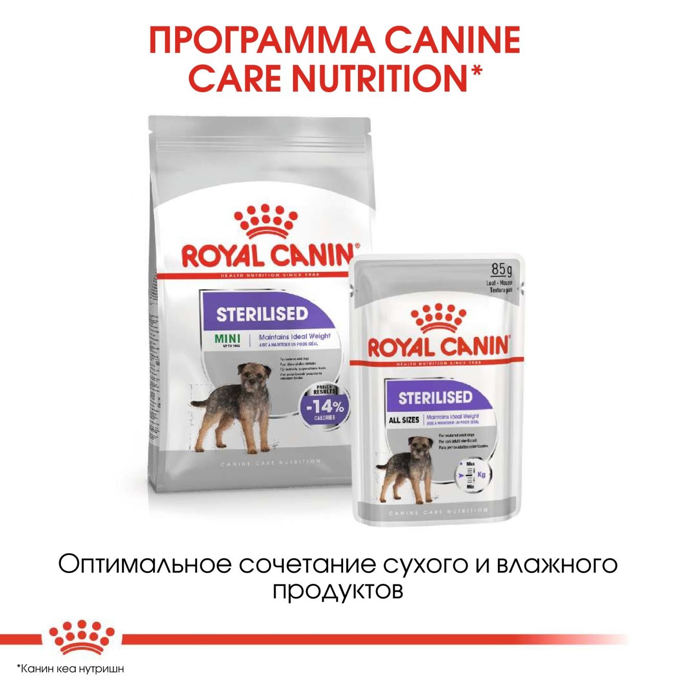Стерилайзд Канин: корм консервированный полнорационный для взрослых стерилизованных собак в возрасте 10 месяцев и старше, склонных к набору веса