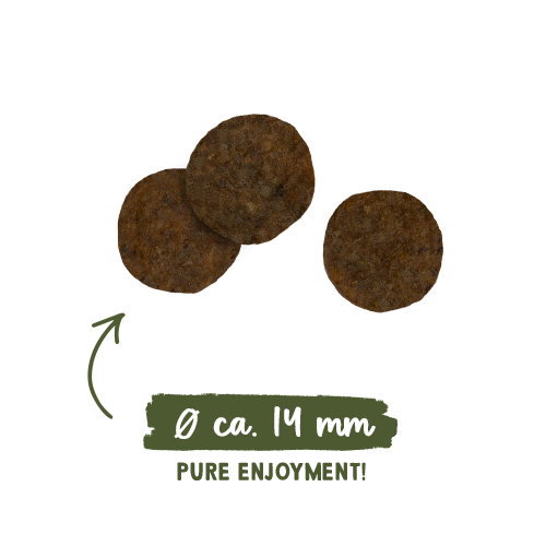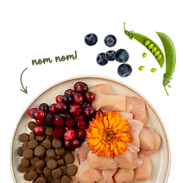 Состав: Мясо птицы (свежее, 20%), белок птицы (сушеный), рис, рисовая мука, животный жир, свежая печень (5%), печеночная мука, мука из лосося, гидролизат белка, сушеный жом свеклы (обессахаренный), льняное семя, гороховая клетчатка , горох (сушеный), карбонат кальция, яйцо цельное (сушеное), масло лосося, дрожжи (сушеные, в т.ч. 0,1% маннанолигосахаридов, 0,06% бета-глюканов), хлорид калия, клюква (сушеная), черника (сушеная), зеленогубчатые мидии (сушеные, 0,1%), цветки бархатцев (сушеные), порошок цикория, юкка (сушеные).
