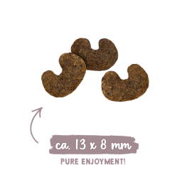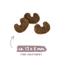 Состав: мясо птицы (свежее, 20 %), рис, рисовая мука, животный жир, свежая печень (5 %), шкварки (сушеные), белок из птицы (сушеный), сушеный свекольный жом (обессахаренный), мука, белковый гидролизат, гороховые волокна, картофельный белок, целлюлоза, масло лосося, льняное семя, рыбная мука, цельное яйцо (сушеное), карбонат кальция, дрожжи (сушеные, в т. ч. 0,1 % маннанолигосахаридов, 0,06 % бета-глюканов), хлорид калия, ягоды брусники (сушеные), ягоды голубики (сушеные), зеленые мидии (сушеные), цветы календулы (сушеные), цикорий салатный (сушеный), юкка (сушеная).