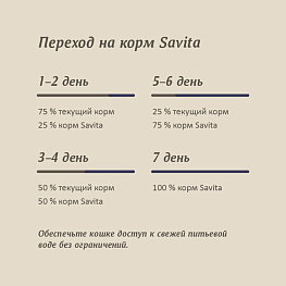 витамин A 20 000 МЕ, витамин D3 1 600 МЕ, витамин E 400 мг, витамины группы В 2900 мг, витамин C 100 мг, таурин 16000 мг, медь (сульфат меди пентагидрат) 15 мг, цинк (сульфат цинка моногидрат) 140 мг, марганец (сульфат марганца моногидрат) 30 мг, йод (йодат кальция) 2 мг, селен (селенит натрия) 0,4 мг.