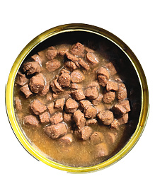 Индейка, курица, субпродукты говяжьи: печень, легкое, сердце, пубец, язык, злаки, желирующая добавка, растительное масло, соль, вода.