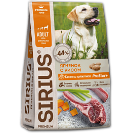 SIRIUS — сухой корм премиум класса для полноценного ежедневного рациона взрослых собак. Высокое содержание мясных ингредиентов обеспечивает оптимальный уровень белка и укрепляет мышцы. Баланс витаминов и комплекса пробиотиков 4-го поколения PROSTOR+ нормализует пищеварение и укрепляет иммунитет. Омега 3 и Омега 6 способствуют поддержанию здоровья сердца, мозга, нервной системы, здоровья кожи и красоты шерсти.